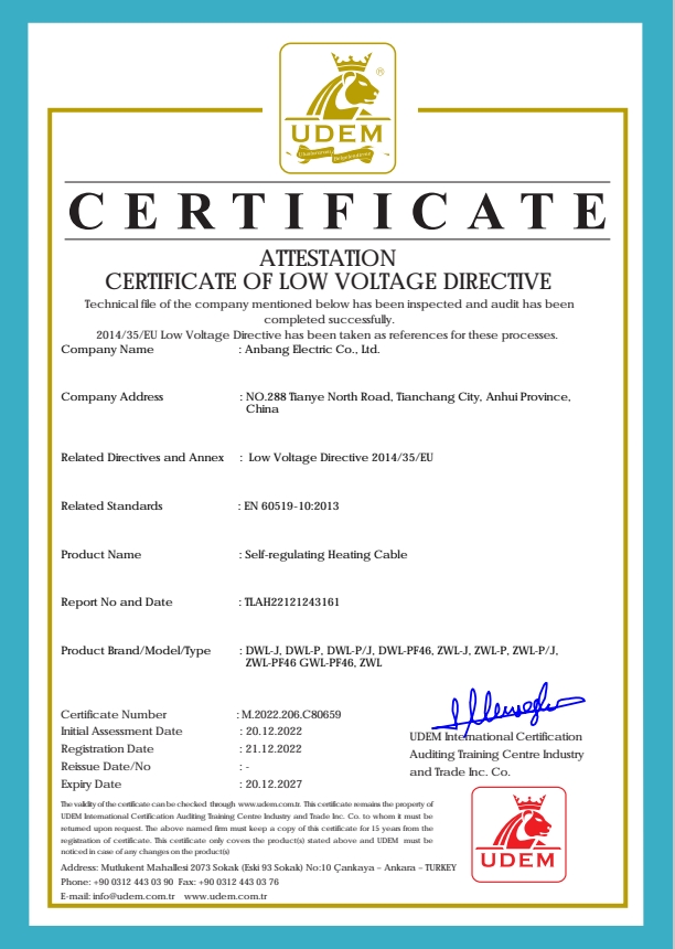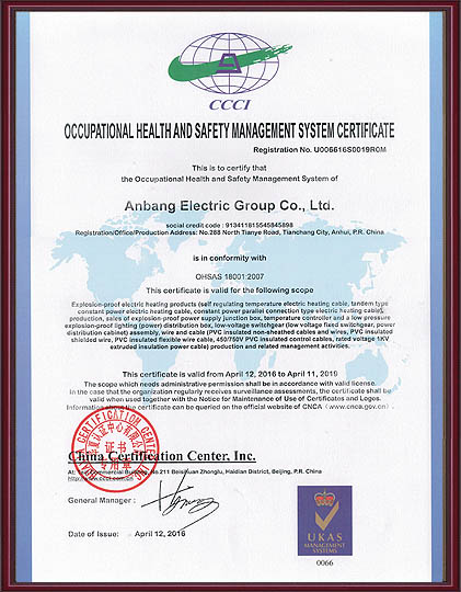 安邦電氣股份有限公司,總部位于北京市長安街,成立于2004年,注冊資金10088萬。安徽生產基地占地面積63000平方米,擁有66套各類生產線,其中進口生產線6套。國家高新技術型企業,滁州市市長質量獎企業,專精特新“小巨人”企業,擁有國家知識產權局授權的45項專利,其中發(fā)明專利28項 , 主筆《太陽能熱利用自限溫電熱帶安裝規(guī)范》行業標準,參編《自限溫電伴熱帶》國家標準、《工業和商業用電阻式伴熱系統》國家標準、《太陽能熱利用自限溫電熱帶》行業標準、《爆炸性環(huán)境 電阻式伴熱器》國家標準等7項國家標準。企業通過UL認證,國家強制性 CCC產品認證,ISO9001質量管理體系認證,ISO14001環(huán)境管理體系認證,ISO45001職業健康安全管理體系認證,Q/SHS0001.1健康、安全與環(huán)境管理體系認證,歐盟防爆ATEX認證,歐盟CE認證,RoHS認證,俄羅斯海關聯盟認證,國家防爆電氣CCC證書。產品系列:集膚伴熱系統、電伴熱系統、電加熱器、電地暖系統、集儀器儀表、電線電纜、高低壓配電柜(箱)、電纜橋架、閥門管件等等設計、制造、銷售。產品應用于航天航空、軍工、石油、石化、天然氣、機場、化工、鋼鐵、隧道、消防、養殖、融雪化冰、室內供暖、國家電網及眾多電廠等等國家重點工程。出口美國、英國、德國、俄羅斯、韓國、日本、哈薩克斯坦、烏克蘭、伊朗等眾多國家。